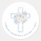 Blue Floral Cross Baptism Classic Round Sticker