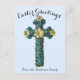 Blue Floral Cross Vintage Easter Religious Postcard