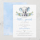 Blue Floral Elephant Little Peanut Baby Boy Shower Invitation