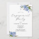 Elegant engagement party invitation featuring watercolor illustration of blue peony flowers with greenery. Perfect for your spring or summer wedding.