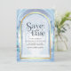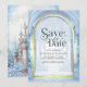 Amaze your guests with this lovely fairy tale theme wedding save the date featuring a beautiful castle and majestic arches with modern typography.