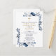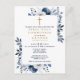 This modern navy blue floral first holy communion save the date can be personalized with your information in elegant typography. Designed by Thisisnotme©