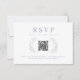 Capturez l'élégance et la romance avec ces cartes de réponse RSVP florale bleu clair exquise, conçues pour un mariage bohème rustique automne/hiver. Dotés d'une couronne étonnante et vivante de fleurs de fleur sauvage bleu poussiéreuses et de fleurs séchées à la prée crème, ces cartes comprennent du code qr et du monogramme sur le dos.