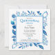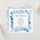 Square blue princess Quinceañera Invitations with hints of aquamarine. With flower petals, hearts and leaves, this design is perfect for a winter or spring quinceanera. Versatile for royal blue, winter blue and grey, aquamarine and cyan theme colours.