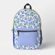Blue Floral Garden Personalized Name Initial Printed Backpack