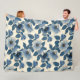 Blue Floral Gold Glitter Japanese Ukiyo-e Fleece Blanket