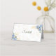 This elegant wedding place card features soft blue watercolour florals, gold marble accents, and refined typography on a champagne-white background. Ideal for boho-inspired or nature-themed weddings, it blends effortless beauty with modern sophistication for a timeless impression.