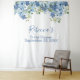 A beautiful blue floral with greenery bridal or wedding shower back drop.  Add the brides name and the wedding date.