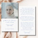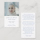 Honor a cherished life in loving memory with this elegant prayer card featuring classic script typography, soft blue botanical details, and space for a personal photo, name, with a meaningful bereavement verse to comfort those who grieve. A timeless memorial keepsake for funerals, celebration of life services, and remembrance gatherings, offering comfort and sympathy during times of grief and loss.You can find more elegant prayer cards in the Elegant Memorial Keepsake Prayer Card collection in The Gathering Designs store.