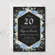 Blue Floral Leaves Black Twenty 20th Birthday Invitation