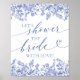 The Let's Shower the Bride with Love Sign in Blue Floral design is a charming and inviting element for a bridal shower celebration. This sign is typically displayed near the entrance or gift table, welcoming guests to contribute their well-wishes, love, and gifts for the bride-to-be.