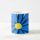 Close-up of pretty hand-painted blue daisy with yellow centre flower outlined in black dinnerware accessories. Love is written in black script around light blue mug. Pretty mug to brighten up someone's day. Original Graphic Artwork by TamiraZDesigns. www.zazzle.com/tamirazdesigns