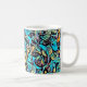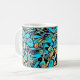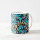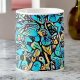 This design features a turquoise blue design that weaves floral elements into a modern art-style vivid pattern, which might just give you a boost when you grab your morning java or afternoon tea. This design is a stylized, abstract pattern based on a hydrangea.