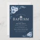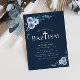 blue and white floral design, custom photo baptism and christening invite. The text and colours can be edited.
