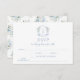 Delicate romantic light blue floral wedding response RSVP cards featuring bride and groom monogram on vintage crest decrated with blue and white flower bloom.