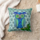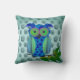 Blue Floral Owl Throw Pillow