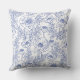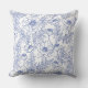 Blue Floral Pattern - Delicate Line Art Fabric Throw Pillow