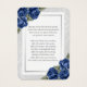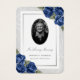 Elegant blue floral memory cards/funeral prayer cards featuring a photo frame adorned with blue roses and baby's breath flowers. Matching items available.