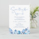 Something blue before I do bridal shower invitation featuring a lovely blue floral arrangement on the base with some blue berries. This something blue bridal shower invitation also features a modern calligraphy text heading in blue.