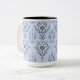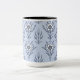 Add a touch of style to your morning routine with this durable ceramic mug featuring a seamless soft blue floral design in a symmetric pattern. The contrasting interior and handle give it a modern two-tone look, making it perfect for coffee, tea, or hot chocolate. Ideal as a unique gift for coffee lovers.