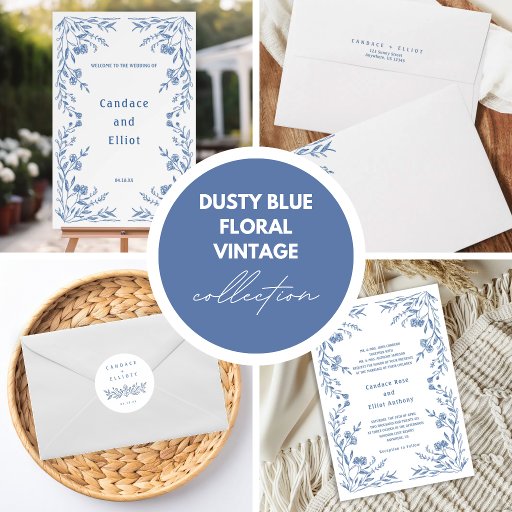 Set the tone for your special day with this elegant blue floral vintage wedding invitation. Featuring delicate vintage-inspired blue floral artwork, this design is perfect for classic, garden, or romantic wedding celebrations.
