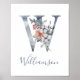 Aquarelle bleu Floral Monogramme W Nom Poster