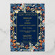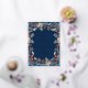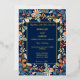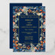 Navy blue floral design is perfect for summer and fall weddings. The navy blue background is a stunning backdrop for the softer flowers of blues, rust, and a hint of silver. The gold foil frame and letters makes everything pop. It is truly a stunning design.