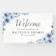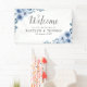 watercolor hand painted blue flowers with script and text. The colours and other features on this banner can be personalized.