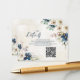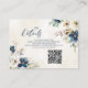 QR code wedding detail card inserts for your winter wedding with elegant navy blue and cream watercolor floral theme. Use these cards to direct your guest to your wedding website for more details about your accommodations, directions or to RSVP online.
