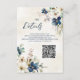 QR code wedding detail card inserts for your winter wedding with elegant navy blue and cream watercolor floral theme. Use these cards to direct your guest to your wedding website for more details about your accommodations, directions or to RSVP online.