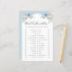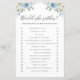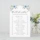 What will the mom-to-be do? Add this fun and playful botanical baby shower game card to your event. It features watercolor illustrations of off-white and blue roses and peonies with a greenery accent. Personalize by adding back texts. This floral guessing game card is perfect for winter and It's a Boy baby showers.