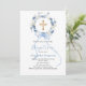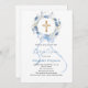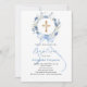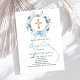 Blue floral wreath boy bow cross baptism invitation