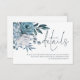 Blue Florals Script QR Code Wedding Details enclosure making it convenient for your guests to reply by scanning your QR code leading to your wedding website reply page. Details is in a stylish set script and easily personalise the rest of the words to your own and replace the sample QR code on the back with yours simply by changing the sample url to that of your own website.