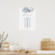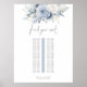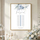 Dusty Blue Florals Modern Script Single Table Wedding Seating Chart Available digitally and printed. Find Your Seat is in a stylish set script and the rest of the text you can easily personalise. A bouquet of light blue florals is at the top.