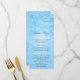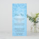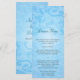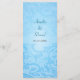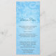 Floral scrollwork makes a unique look for this lovely blue wedding menu card. The image is repeated on the bottom as a watermark to offset the customized wedding menu text. The entire image is repeated on the reverse in an opposite manner and text can be added or removed above it. An elegant and classic look for a special day. Available in alternate colours with matching products.