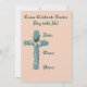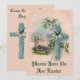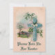 This vintage Christian Easter postcard image showing a cross made of blue flowers with a beautiful farm at springtime in the background is reprinted here on this invitation.
