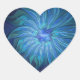 Blue Flower Fantasy Pattern, Abstract Fractal Art Heart Sticker
