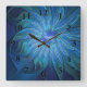 Blue Flower Fantasy Pattern, Abstract Fractal Art Square Wall Clock