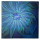 Blue Flower Fantasy Pattern, Abstract Fractal Art Tile