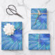 Blue Flower Fantasy Pattern, Abstract Fractal Art Wrapping Paper Sheet