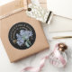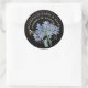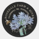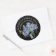 Realistic bee image alongside a blue flower with a dotted border on black label. Personalize with your name, address, honey net weight. Common honey net weight conversions: 8oz (227g), 12oz (340g), 16oz (454g), 32oz (907g), 5lb (2.27kg).