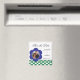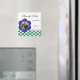 This fun and modern design is a perfect Save the Date magnet reminder. The background is white with a blue flower as a frame for your photo. There is a green lattice fence graphic at the bottom. The text is completely customizeable.