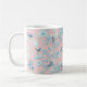 blue flowers and bird ,Background light rose colou Coffee Mug