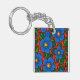 Blue Flowers and Green Leaves on a Red Background Keychain