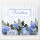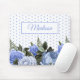 Blue Flowers Green Leaves Monogram White Polka Dot Mouse Pad