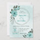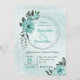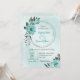 Unique wedding invitation featuring romantic blue flowers and green leaves.