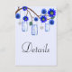 Blue Flowers Mason Jars Wedding Details Enclosure Card
