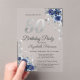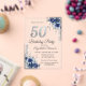 Blue Flowers Silver Glitter Drips 50th Birthday Acrylic Invitations