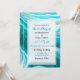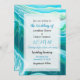Abstract blue and green water like fluid art pour painting style classy marble art wedding invitations.
