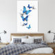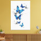 Flying Blue Butterflies morpho and white butterflies on a light abstract background. Morpho. Design with blue butterflies morpho.
